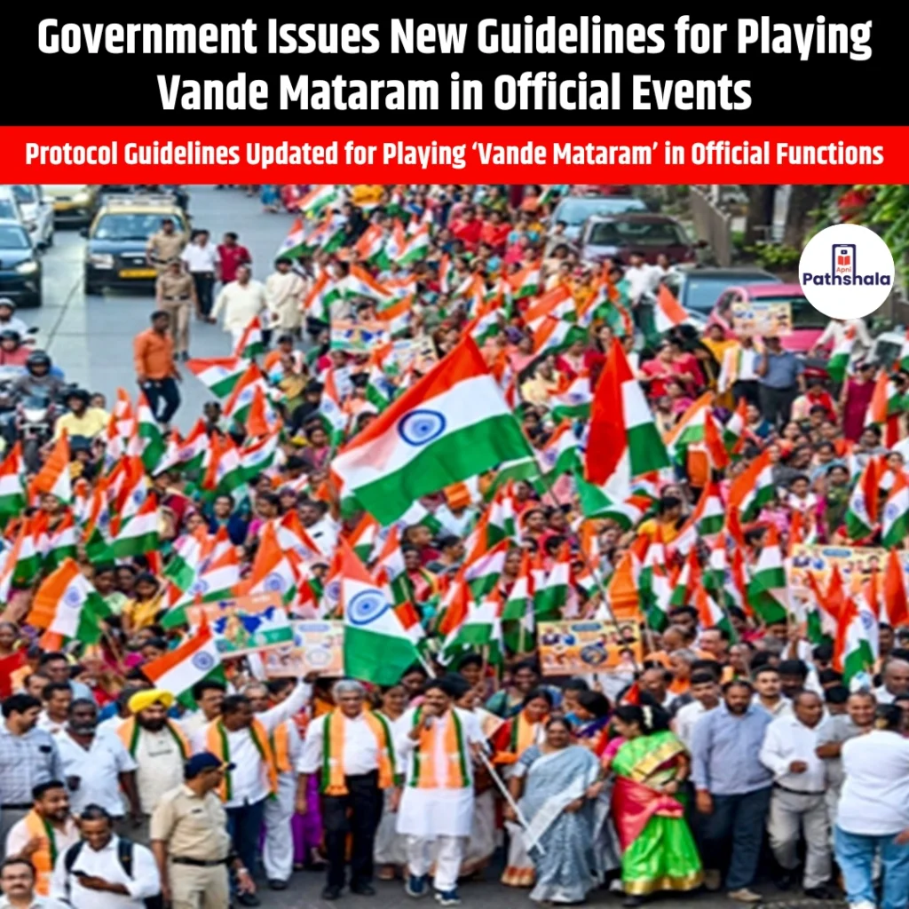 Government Issues New Guidelines for Playing Vande Mataram in Official Events General Studies Paper II: Government Policies & Interventions, Modern Indian History Why in News? Recently, the Ministry of Home Affairs (MHA), has issued detailed and formal guidelines that strictly govern how the national song ‘Vande Mataram’ must be played or sung at official functions, […]