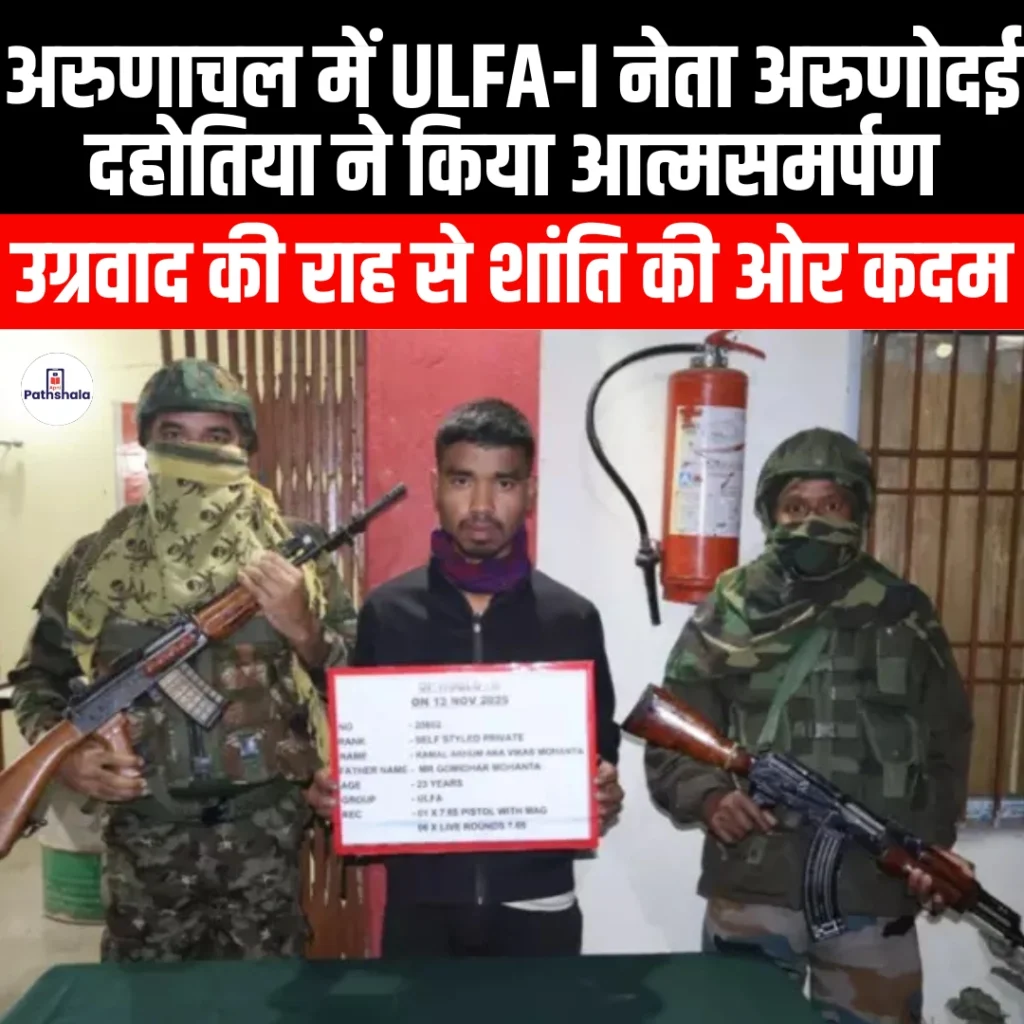 ULFA-I leader Arunodai Dahotia surrenders in Arunachal संदर्भ: हाल ही में, यूनाइटेड लिबरेशन फ्रंट ऑफ असम–इंडिपेंडेंट (ULFA-I) के वरिष्ठ नेता अरुणोदई दहोतिया ने अरुणाचल प्रदेश के भारत–म्यांमार सीमा क्षेत्र में आत्मसमर्पण किया, जो उत्तर-पूर्व में चल रही दशकों पुरानी उग्रवाद समस्या के समाधान की दिशा में एक महत्त्वपूर्ण मोड़ है। अरुणोदई दहोतिया कौन हैं? दहोतिया, […]