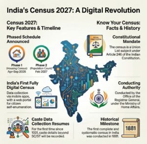 - Legal Basis: Census 2027 will be conducted under the Census Act, 1948 and Census Rules, 1990, which empower the Government of India to collect detailed population and housing information.