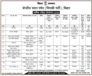 Complete CSBC Bihar Police Exam Calendar 2026 Table