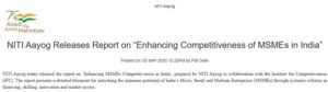 नीति आयोग ने हाल ही में भारत में सूक्ष्म, लघु और मध्यम उद्यमों (MSMEs) की प्रतिस्पर्धात्मकता (competitiveness) को बढ़ाने पर केंद्रित एक महत्वपूर्ण रिपोर्ट जारी की है। यह रिपोर्ट MSME क्षेत्र को अधिक सक्षम, सशक्त और वैश्विक बाजार के अनुरूप बनाने के लिए आवश्यक सुधारों और रणनीतियों को रेखांकित करती है।