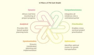 निष्कर्ष: प्रधानमंत्री गति शक्ति योजना भारत की अर्थव्यवस्था को एकीकृत अवसंरचना ढांचे से जोड़ने का प्रयास है। यह मल्टीमॉडल परिवहन, डेटा-संचालित योजना और समन्वित विकास के माध्यम से भारत को लॉजिस्टिक दक्षता और वैश्विक प्रतिस्पर्धा की दिशा में आगे बढ़ा रही है।