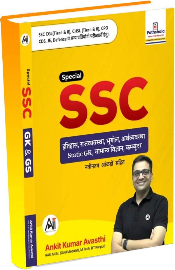 SSC — इस पीली पुस्तक को SSC बोर्ड द्वारा जारी सभी परीक्षाओं के पाठ्यक्रम का अध्ययन कर तैयार किया गया है। इसमें इतिहास, भूगोल, राजस्थान, अर्थव्यवस्था, सामान्य विज्ञान, Static GK तथा कंप्यूटर विषय के नवीनतम अपडेटेड अंक जोड़कर प्रस्तुत किए गए हैं। प्रत्येक अध्याय में नवीनतम पाठ्यसामग्री के साथ नए कलेवर में परीक्षा बिंदु, त्वरित पुनरावलोकन (Quick Revision) तथा विगत वर्षों में पूछे गए प्रश्नों का उपयुक्त समावेश किया गया है।